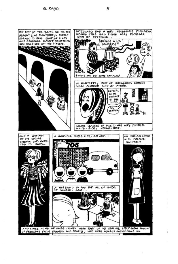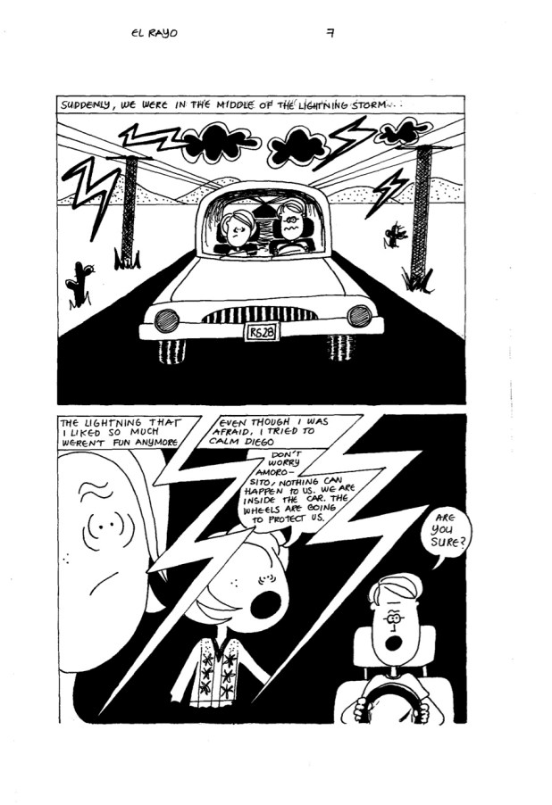Después me vine a Nueva York, y tras terminar mi maestría en Columbia y pasar por una etapa de cambio muy difícil, decidí entrar al curso de «Comic Narrative» en la School of Visual Arts. Ahí pude terminar el primer, y hasta ahora único, capítulo de «El Rayo», una novela gráfica autobiográfica que algún día pienso terminar.