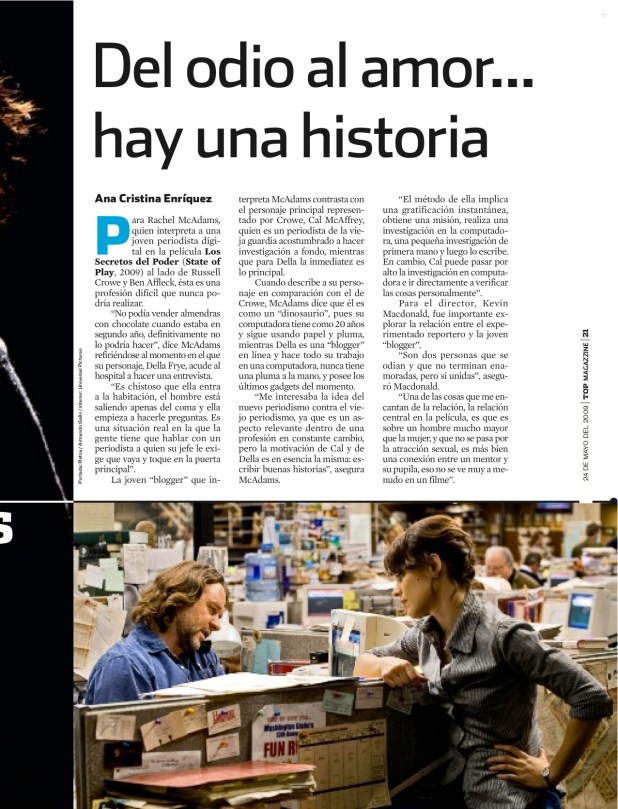 Entrevista a Rachel McAdams por su participación en «Los Secretos del Poder».