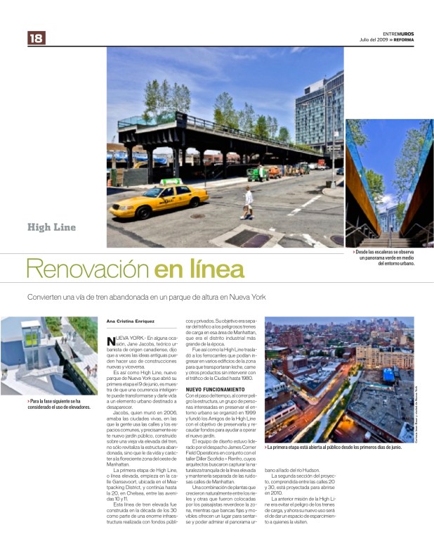Nota sobre la inauguración de la primera etapa de la High Line.
