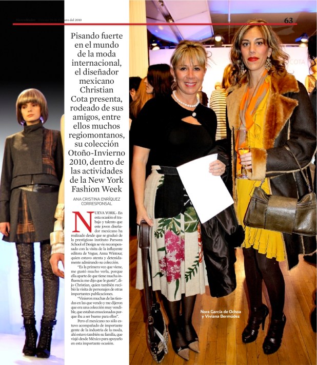 En la presentación de la colección del diseñador mexicano Christian Cota éramos tres personas del Grupo Reforma las que coincidimos en el evento: el enviado de la Sección Moda, el corresponsal y yo (a quien a veces me otorgaban el crédito de corresponsal y otras de «especial», según el criterio del editor en turno).