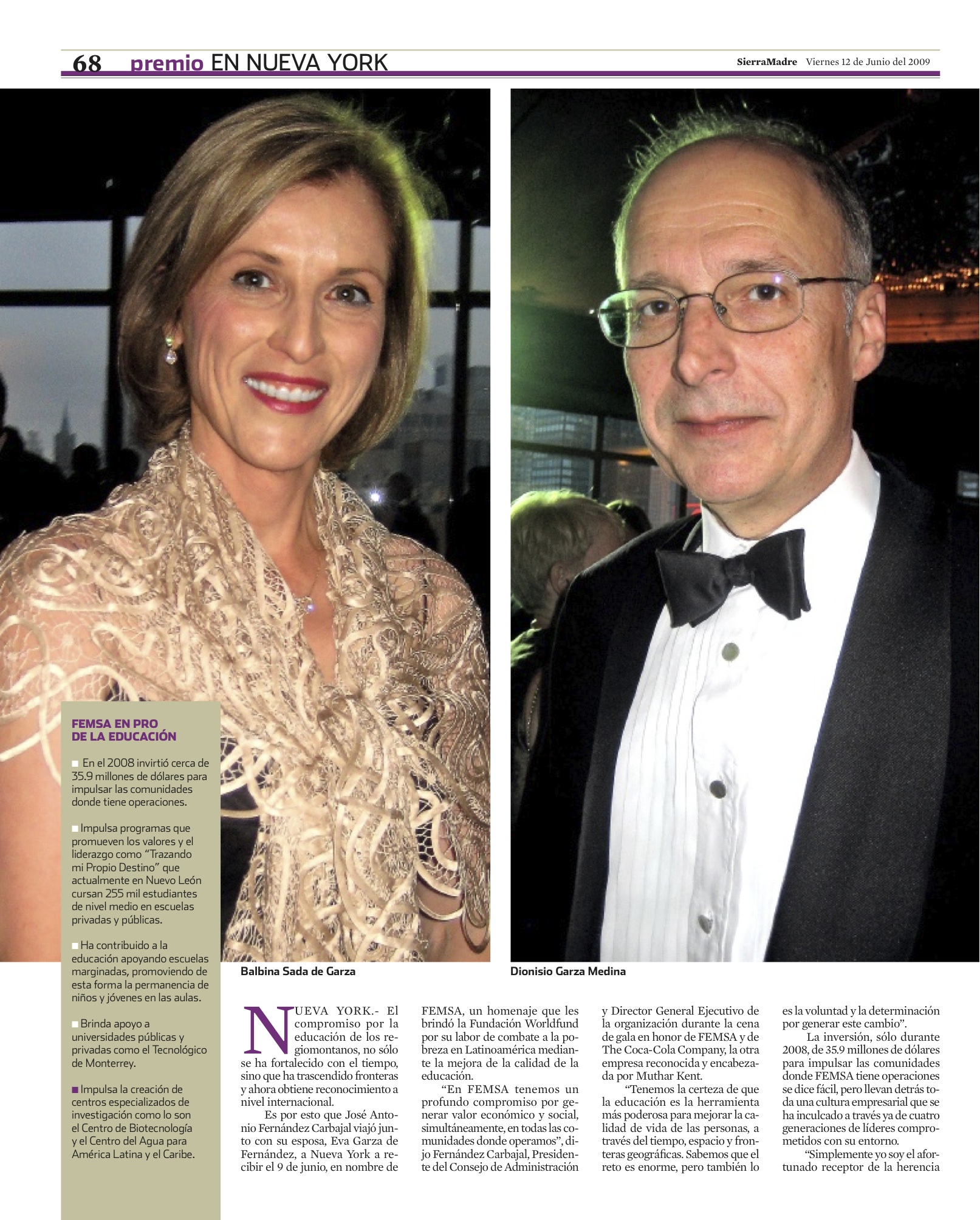 Cobertura de reconocimiento que recibe el grupo regiomontano FEMSA por su apoyo a la educación.